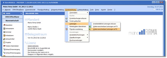 1. Klicken Sie im Hauptmenü auf "Kostenrechnung > Leistungen > Weiterverrechenbare Leistungen an Prj".