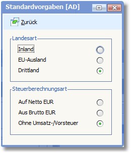 Über die Landesart werden Kunden, Lieferanten und Erstkontakte in 3 Kategorien geordnet. Mit dem Radiobutton haben Sie die Auswahl zwischen folgenden Optionen: