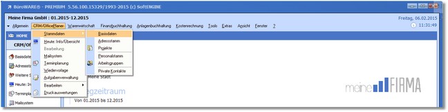 1. Klicken Sie mit der Maus im Hauptmenü auf "CRM/OfficePlaner > Stammdaten > Basisdaten".
