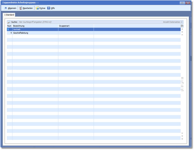 << Hier KLicken um eine Inhaltsübersicht anzuzeigen >> Navigation: CRM/OfficePlaner > Stammdaten > Weitere Stammdaten > Personalstamm > Personaldaten erfassen/ändern > Die Karteikarte "Geschäftlich" > Zugeordnete Arbeitsgruppen |