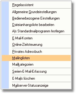 << Hier KLicken um eine Inhaltsübersicht anzuzeigen >> Navigation: CRM/OfficePlaner > Mailsystem > Mail einrichten > E-Mail-Assistent - Extras > Mailinglisten |