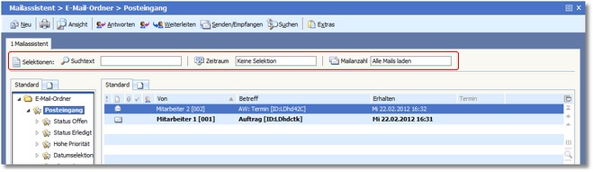 Mit dieser Option können Sie oberhalb der Mailtabelle eine Selektionsleiste anzeigen lassen, mit welcher der Inhalt der aktuellen Mailtabelle gefiltert werden kann: