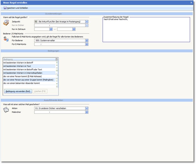 4. Speichern Sie die neue Regel mit [F10].