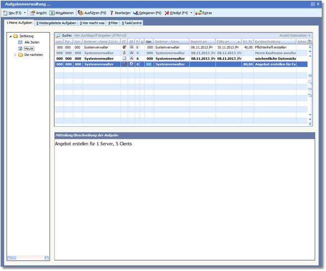 << Hier KLicken um eine Inhaltsübersicht anzuzeigen >> Navigation: CRM/OfficePlaner > Aufgabenverwaltung |