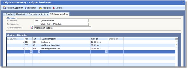 << Hier KLicken um eine Inhaltsübersicht anzuzeigen >> Navigation: CRM/OfficePlaner > Aufgabenverwaltung > Aufgaben erstellen / bearbeiten > Die Karteikarte "Bediener Ablaufplan" |