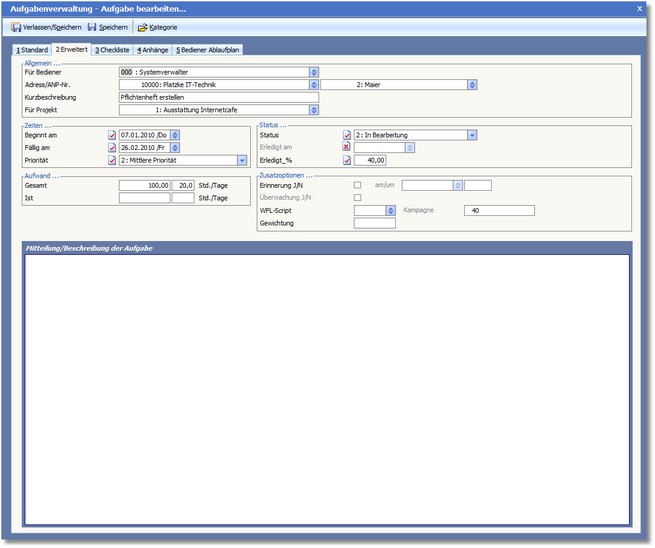 << Hier KLicken um eine Inhaltsübersicht anzuzeigen >> Navigation: CRM/OfficePlaner > Aufgabenverwaltung > Aufgaben erstellen / bearbeiten > Die Karteikarte "Erweitert" |