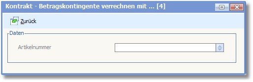 In diesem Feld können Sie einen Artikel hinterlegen, mit dem der Vertrag verrechnet werden kann. Mit der Funktionstaste [F5] können Sie aus der Artikelauswahltabelle den entsprechenden Artikel auswählen und in das Feld übernehmen.