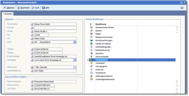 Die Basisdaten der Warenwirtschaft werden geöffnet.