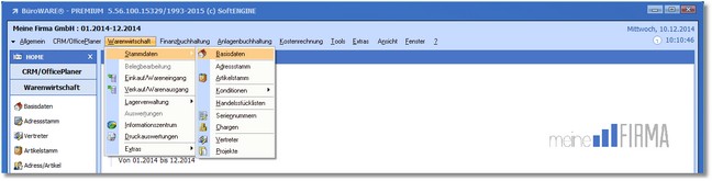 1. Klicken Sie mit der Maus im Hauptmenü auf "Warenwirtschaft > Stammdaten > Basisdaten".