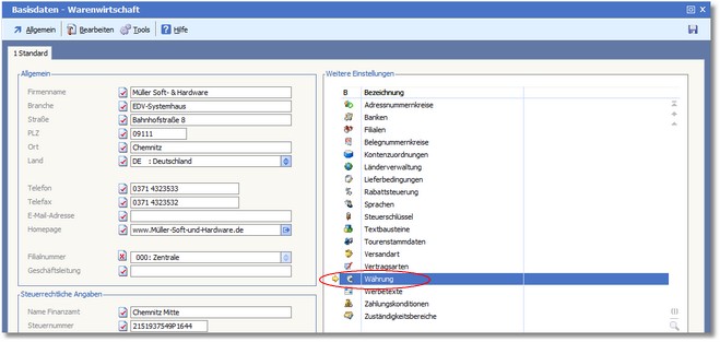"Währung" bietet Ihnen die Möglichkeit, 99 Fremdwährungen zu definieren und in allen Wareneingangs- und Warenausgangsbelegen zu verwenden. Die Leistungsmerkmale: