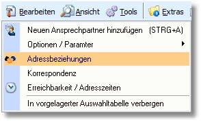 2. Im Dialog "Erfassen/Ändern Adressdaten" klicken Sie auf den Menüeintrag "Bearbeiten > Adressbeziehungen".
