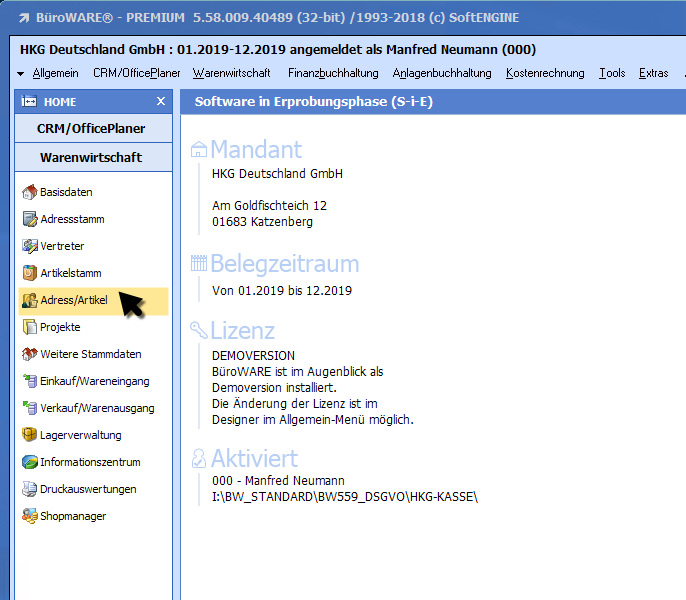 3. über die Verknüpfung "Adress/Artikel" in der Gruppe Warenwirtschaft des Arbeitsplatzes.