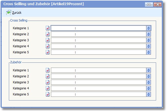 So können Sie die Kategorien für den Cross Selling- oder Zubehörkatalog in der Artikeltabelle hinterlegen:
