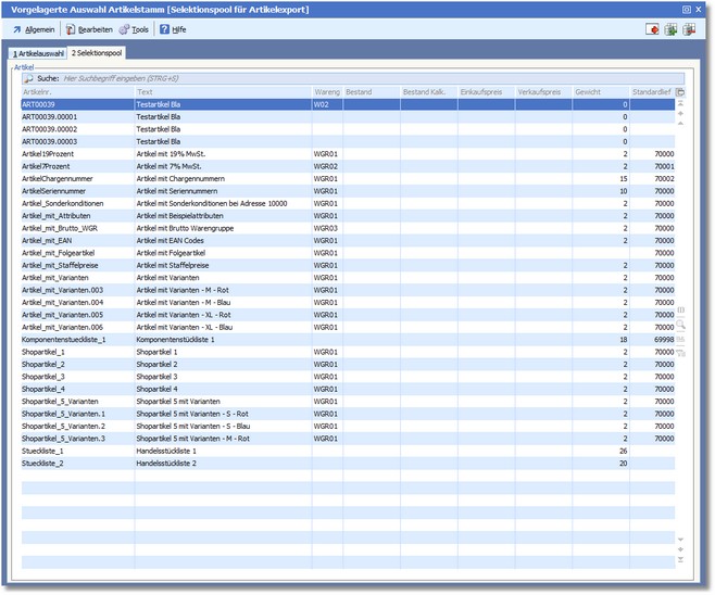 << Hier KLicken um eine Inhaltsübersicht anzuzeigen >> Navigation: Warenwirtschaft > Stammdaten > Artikelstamm > Selektionspool Artikelstammdaten |