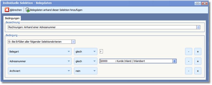 Mit [F9] oder Klick auf <Belegdaten anhand dieser Selektion hinzufügen> werden die selektierten Belege dann dem Selektionspool hinzugefügt.