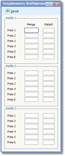 In dieser Maske werden Felder für Menge und Handelsspanne in Prozent für Staffelpreise zur Verfügung gestellt. Die hier eingetragenen Kalkulationssätze werden bei der Zuweisung dieser Warengruppe zu einem Artikel automatisch übernommen.