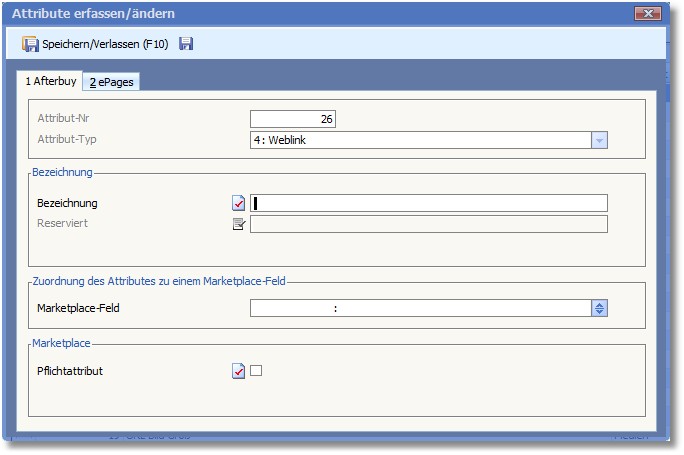 Hier wird der ausgewählte Attributtyp "Weblink" angezeigt.