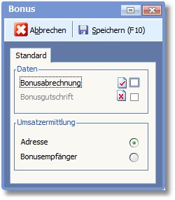 Hier können Sie durch Aktivierung des entsprechenden Radiobuttons festlegen, ob zur Bonusermittlung die Umsätze der Adresse oder des Bonusempfängers herangezogen werden sollen.