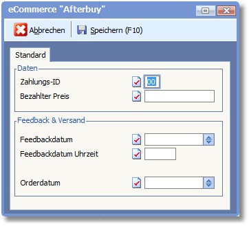 Wenn der Beleg mit Afterbuy erzeugt und über den Shopmanager in das Programm importiert wurde, sind in dieser Maske spezielle Daten zum Beleg ersichtlich.