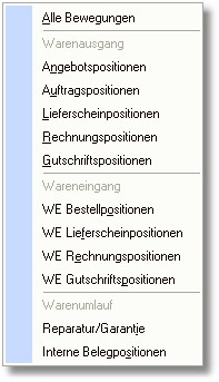Über diesen Button können Sie die einzelnen Artikelbewegungen auflisten. Zuvor können Sie in einem Pop-Up-Menü auswählen,
