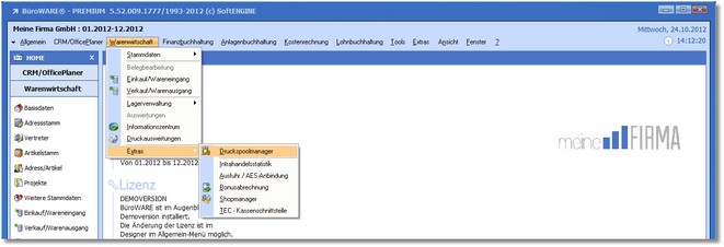 1. Klicken Sie mit der Maus im Hauptmenü auf "Warenwirtschaft > Extras > Druckspoolmanager".