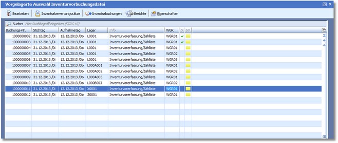 Nach der Verbuchung erhalten die Buchungsstapel in der vorgelagerten Auswahl Inventurvorbuchungsdatei eine andere farbliche Kennzeichnung: