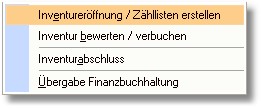 So können Sie eine Inventur eröffnen/Zähllisten erstellen: