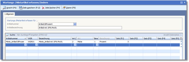 Artikelnummern für Miet- und Wartungsartikel können frei gewählt werden und sind nicht an das Schema dieses Beispiels gebunden! |