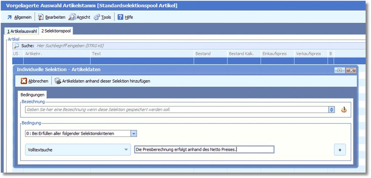 << Hier KLicken um eine Inhaltsübersicht anzuzeigen >> Navigation: Warenwirtschaft > Selektionspools > Neuerungen Selektionspool > Selektion über Volltext |