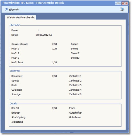 Im Finanzbericht erhalten Sie detaillierte Informationen über due Umsätze des Tages.