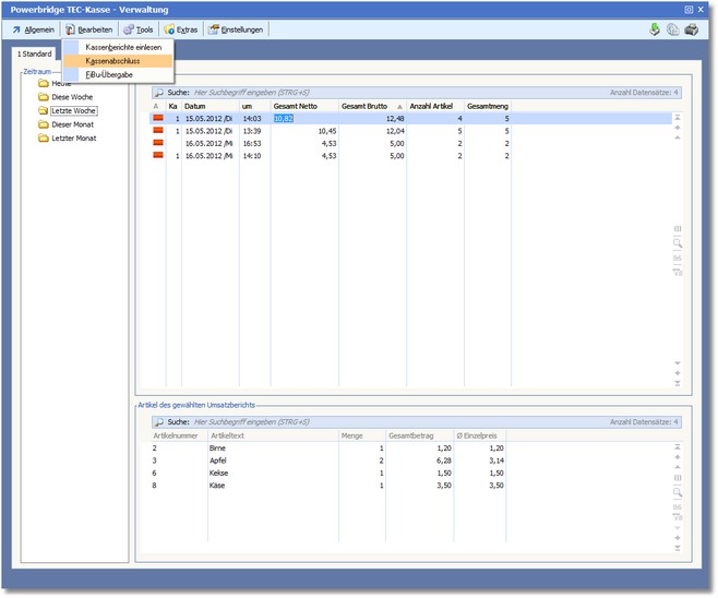 Der Dialog "TEC Kasse - Verwaltung" wird geöffnet.