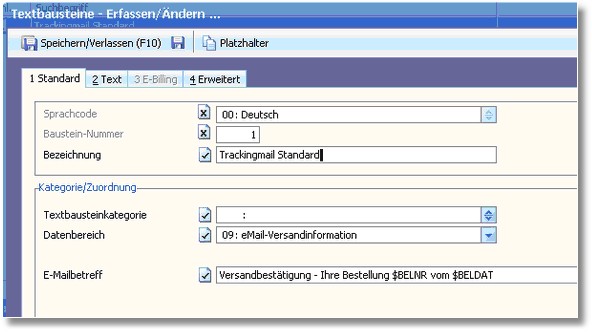 Für die Neuanlage eines entsprechenden Textbausteins beachten Sie bitte das Kapitel